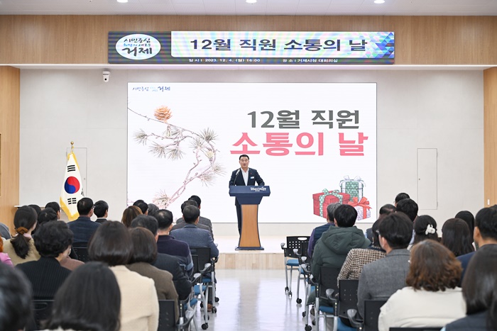 [½Ã»çÄÚ¸®¾ÆÀú³Î=Á¤Á¾¹Î ¼±ÀÓ±âÀÚ] °ÅÁ¦½Ã(½ÃÀå ¹ÚÁ¾¿ì)´Â Áö³ 4ÀÏ ½Ãû ´ëȸÀǽǿ¡¼ Á÷¿ø 200¿© ¸íÀÌ Âü¼®ÇÑ °¡¿îµ¥ 12¿ù Á÷¿ø ¼ÒÅëÀÇ ³¯À» °³ÃÖÇß´Ù.