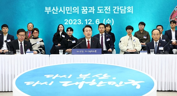 [½Ã»çÄÚ¸®¾ÆÀú³Î=Á¤Á¾¹Î ¼±ÀÓ±âÀÚ] À±¼®¿ ´ëÅë·ÉÀÌ 2030 ¼¼°è¹Ú¶÷ȸ(¿¢½ºÆ÷) ºÎ»ê À¯Ä¡°¡ ºÒ¹ßµÈ ÈÄ Ã³À½À¸·Î ºÎ»êÀ» ã¾Æ ½Ã¹ÎµéÀÇ ¼º¿ø¿¡ »ç·ÊÇÏ¸é¼ °¡´öµµ½Å°øÇ× °Ç¼³ ¹× »ê¾÷ÀºÇà ÀÌÀü µî °¢Á¾ Áö¿øÃ¥À» ¾à¼ÓÇß´Ù.