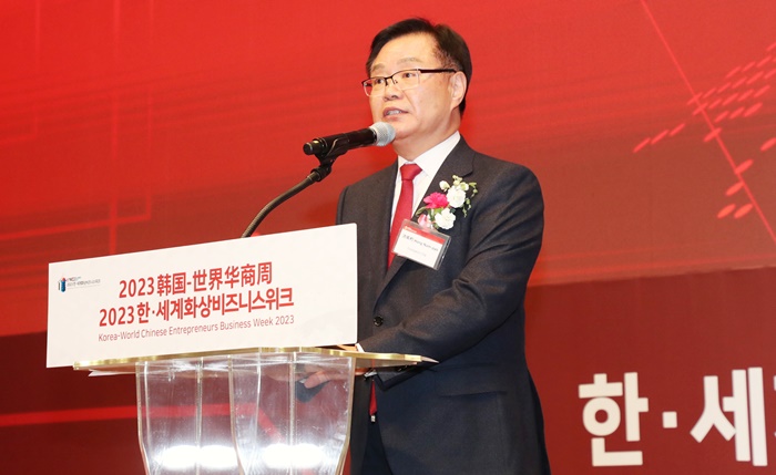 | È«³²Ç¥ â¿øÆ¯·Ê½ÃÀåÀÌ Áö³ 11¿ù 22ÀÏ Ã¢¿ø¿¡¼ ¿¸° 2023 ÇÑ·¼¼°èÈ»óºñÁî´Ï½ºÀ§Å©¿¡¼ ȯ¿µ»ç¸¦ Çϰí ÀÖ´Â ¸ð½À. |