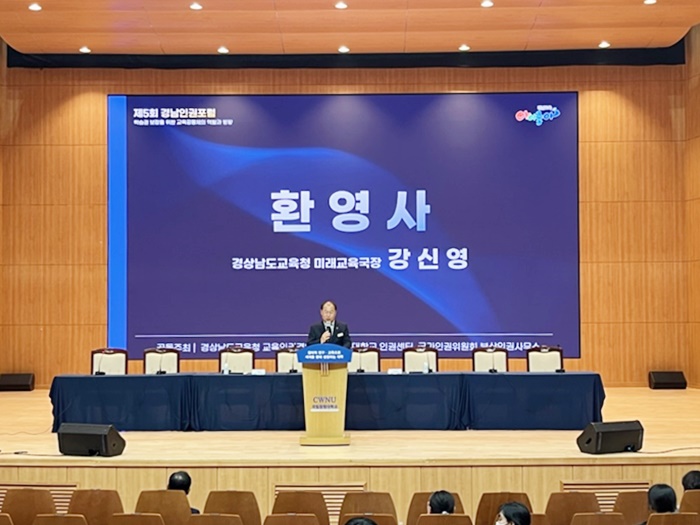 [½Ã»çÄÚ¸®¾ÆÀú³Î=Á¤Á¾¹Î ¼±ÀÓ±âÀÚ] °æ³²µµ±³À°Ã»(±³À°°¨ ¹ÚÁ¾ÈÆ)Àº 7ÀÏ Ã¢¿ø´ëÇб³ ±Û·Î¹úÆò»ýÇнÀ°ü 1Ãþ °¡¿ÂȦ¿¡¼ ‘Á¦5ȸ °æ³²ÀÎ±ÇÆ÷·³’À» ¿¾ú´Ù.