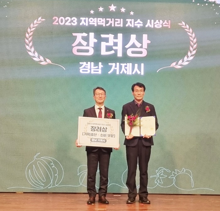 [½Ã»çÄÚ¸®¾ÆÀú³Î=Á¤Á¾¹Î ¼±ÀÓ±âÀÚ] °ÅÁ¦½Ã´Â ‘2023³â Áö¿ª¸Ô°Å¸® Áö¼öÆò°¡’¿¡¼ ±âȹ»ý»ê․¼ÒºñºÎ¹® ¿ì¼ö ÁöÀÚü·Î ¼±Á¤µÅ Çѱ¹³ó¼ö»ê½ÄǰÀ¯Åë°ø»ç »çÀå»óÀ» ¼ö»óÇß´Ù°í ¹àÇû´Ù.