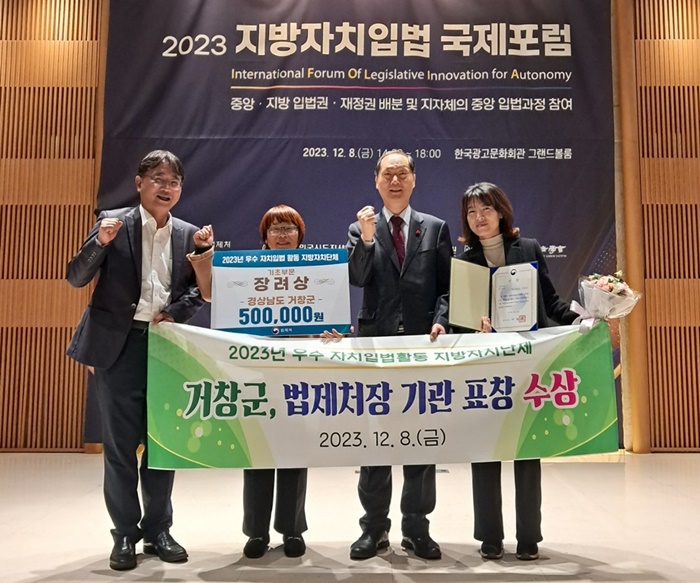 [½Ã»çÄÚ¸®¾ÆÀú³Î=Á¤Á¾¹Î ¼±ÀÓ±âÀÚ] °ÅⱺÀº 8ÀÏ ¹ýÁ¦Ã³°¡ ÁÖ°üÇÑ ‘2023³â ¿ì¼ö ÀÚÄ¡ÀÔ¹ý Ȱµ¿ Áö¹æÀÚÄ¡´Üü’·Î ¼±Á¤µÅ ¹ýÁ¦Ã³Àå ǥâÀ» ¼ö»óÇß´Ù.