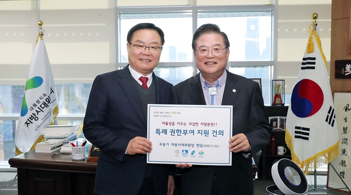| È«³²Ç¥ â¿ø½ÃÀåÀÌ Áö³ 11¿ù 23ÀÏ ¿ìµ¿±â Áö¹æ½Ã´ëÀ§¿øÀå ¸¸³ª ‘Ư·Ê½Ã Áö¿ø’À» °ÇÀÇÇß´Ù. |