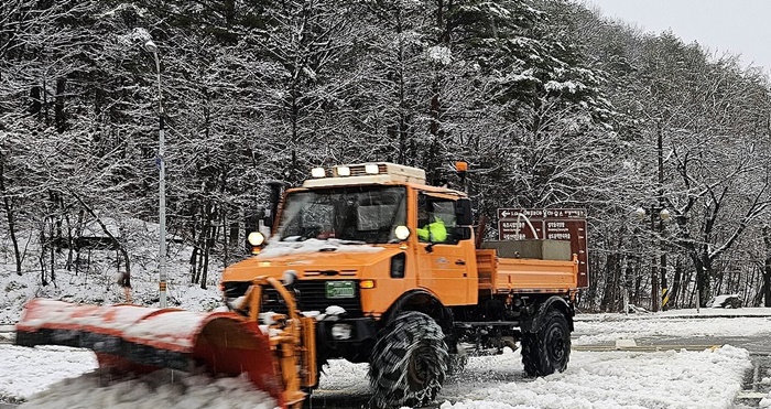 | ´ë¼³Æ¯º¸°¡ ³»·ÁÁø 15ÀÏ ¿ÀÈÄ °¿ø ¼ÓÃʽà Á¦¼³Â÷·®ÀÌ ´«À» Ä¡¿ì°í ÀÖ´Ù. /¼ÓÃʽà Á¦°ø |