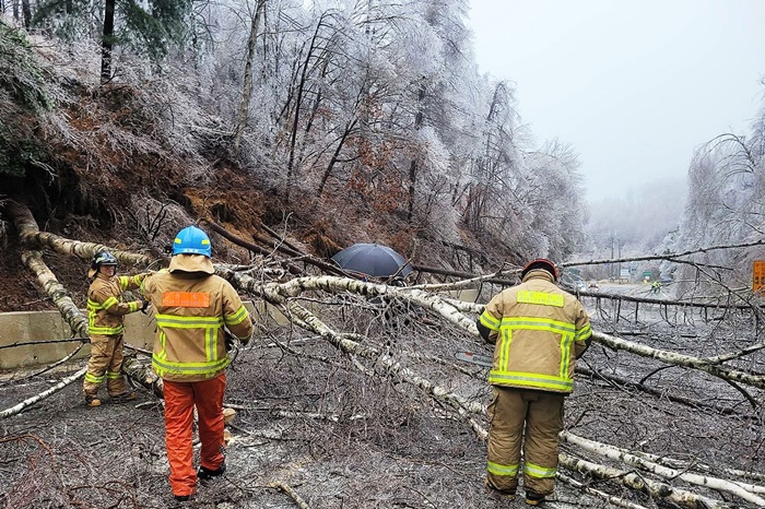 Àü³¯ Ⱦ¼º¿¡¼´Â ³ª¹« ¼ö½Ê ±×·ç°¡ ¾²·¯Á® µµ·Î°¡ ÅëÁ¦µÇ´Â°¡ ÇÏ¸é Æòâ°ú ȫõÀ» ÀÕ´Â ±¹µµ 31È£¼± ¿îµÎ·É ±¸°£¿¡¼´Â ¾²·¯Áø ³ª¹«¿¡ Àü¼±ÀÌ ²÷¾îÁ® ÇÑÀü µîÀÌ º¹±¸ÀÛ¾÷À» Çß´Ù.