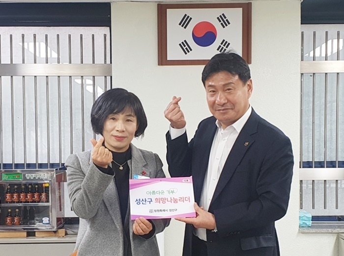 [½Ã»çÄÚ¸®¾ÆÀú³Î=Á¤Á¾¹Î ¼±ÀÓ±âÀÚ] â¿øÆ¯·Ê½Ã ¼º»ê±¸(±¸Ã»Àå À¯ÀçÁØ)´Â 15ÀÏ ³²Ã¢¿ø³óÇù°ú ·ù±æ»óÇÇÀÚ Ã¢¿ø 1È£Á¡À» Èñ¸Á ³ª´® ¸®´õ·Î ¼±Á¤ÇÏ°í ‘Èñ¸Á³ª´®¸®´õÇöÆÇ’À» Àü´ÞÇß´Ù.