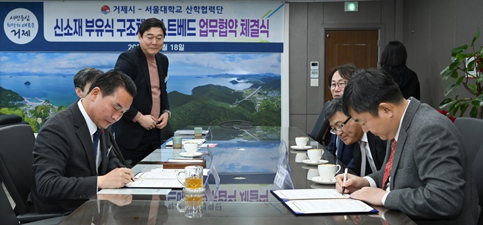 [½Ã»çÄÚ¸®¾ÆÀú³Î=Á¤Á¾¹Î ¼±ÀÓ±âÀÚ] °ÅÁ¦½Ã(½ÃÀå ¹ÚÁ¾¿ì)¿Í ¼¿ï´ëÇб³ »êÇÐÇù·Â´Ü(´ÜÀå ±èÀ翵)Àº 18ÀÏ ½Å¼ÒÀç ºÎÀ¯½Ä ±¸Á¶Ã¼ Å×½ºÆ®º£µå ¾÷¹«Çù¾àÀ» ü°áÇß´Ù.