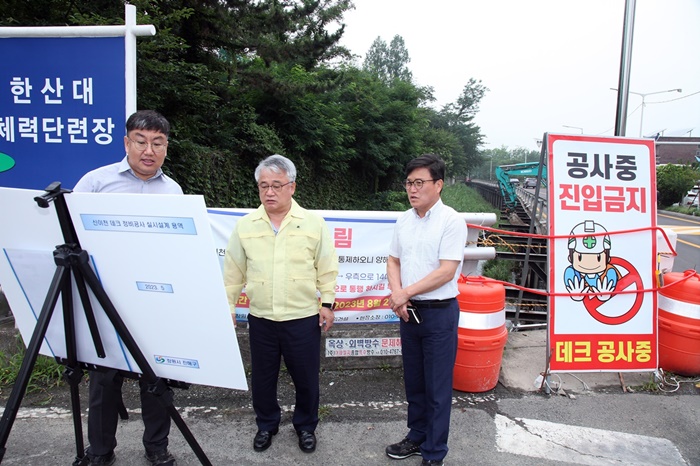 2011³â Á¶¼ºÇÑ ±æÀÌ 755m µ¥Å©·Îµå ±¸°£ Áß ÁøÇر¸¿¡¼´Â ÇöÀç±îÁö ÃÑ »ç¾÷ºñ 5¾ï ¿øÀ» µé¿© 278m ±¸°£À» ĵƿ·¹¹ö½Ä(¿ÜÆÈº¸: ÇÑÂÊ ³¡ÀÌ °íÁ¤µÇ°í ´Ù¸¥ ³¡Àº ¹ÞÃÄÁöÁö ¾ÊÀº »óÅÂÀÇ º¸) Àεµ·Î Á¶¼ºÇß´Ù.