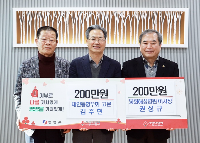 [½Ã»çÄÚ¸®¾ÆÀú³Î=±è¿¬ÇÐ ±âÀÚ] ºÀÈÇØ¼ºº´¿ø ÀÌ»çÀå ±Ç¼º±Ô(Àü Àç¾Èµ¿Çâ¿ìȸÀå)¾¾¿Í Àç¾Èµ¿Çâ¿ìȸ °í¹® ±èÁÖÇö¾¾´Â 19ÀÏ ¿µ¾ç±º(±º¼ö ¿ÀµµÃ¢)¿¡ 'Èñ¸Á2024³ª´®Ä·ÆäÀÎ' ¼º±Ý 400¸¸ ¿øÀ» Àü´ÞÇß´Ù.