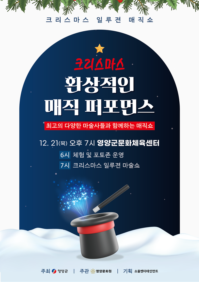 [½Ã»çÄÚ¸®¾ÆÀú³Î=±è¿¬ÇÐ ±âÀÚ] ¿µ¾ç±º(±º¼ö ¿ÀµµÃ¢)Àº ¿µ¾ç¹®È¿ø(¿øÀå ±è°æÁ¾) ÁÖ°üÀ¸·Î 21ÀÏ ¿ÀÈÄ 7½Ã ¿µ¾ç±º ¹®ÈüÀ°¼¾ÅÍ¿¡¼ ¾ÆÀ̵éÀ» À§ÇÑ Å©¸®½º¸¶½º ¸¶¼ú¼î ȯ»óÀûÀÎ ¸ÅÁ÷ ÆÛÆ÷¸Õ½º¸¦ °³ÃÖÇÑ´Ù.