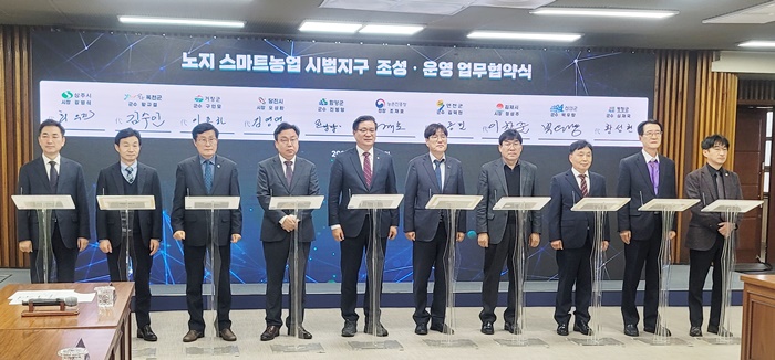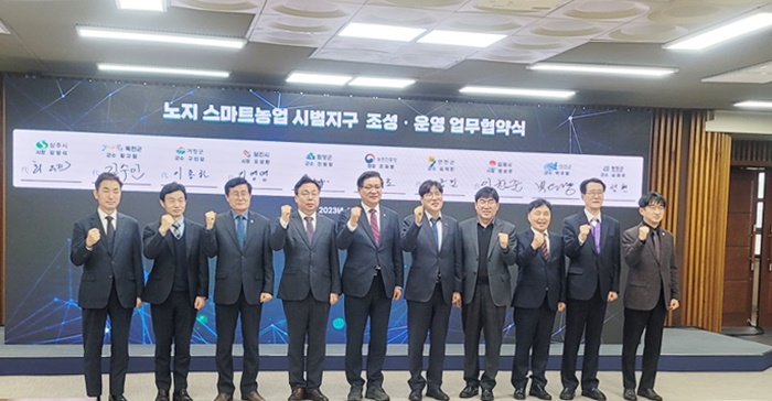 [½Ã»çÄÚ¸®¾ÆÀú³Î=Á¤Á¾¹Î ¼±ÀÓ±âÀÚ] °ÅⱺÀº ³óÃÌÁøÈïû ±¹¸³½Ä·®°úÇпø ÁߺÎÀÛ¹°ºÎ¿¡¼ Á¶ÀçÈ£ ³óÃÌÁøÈïûÀå, ÀÌÁ¾ÇÏ °Åⱺ ºÎ±º¼ö¸¦ ºñ·ÔÇØ 2024~2026³â ³ëÁö ½º¸¶Æ®³ó¾÷ ½Ã¹üÁö±¸·Î ¼±Á¤µÈ 9°³ ÁöÀÚü ´ëÇ¥°¡ Âü¼®ÇÑ °¡¿îµ¥, ½Ã¹üÁö±¸ Á¶¼º·¿î¿µ¿¡ ´ëÇÑ ¾÷¹«Çù¾àÀ» ü°áÇß´Ù°í 20ÀÏ ¹àÇû´Ù.