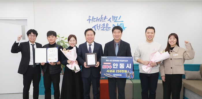 [½Ã»çÄÚ¸®¾ÆÀú³Î=±è¿¬ÇÐ ±âÀÚ] ¾Èµ¿½Ã(½ÃÀå ±Ç±ââ)°¡ 20ÀÏ °æºÏµµÃ»¿¡¼ °³ÃÖÇÑ 2023 °æ»óºÏµµ ÀÏÀÚ¸®´ë»ó ½Ã»ó½Ä¿¡¼ ÃÖ¿ì¼ö»óÀ» ¼ö»óÇÏ´Â Äè°Å¸¦ °Åµ×´Ù.