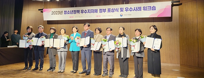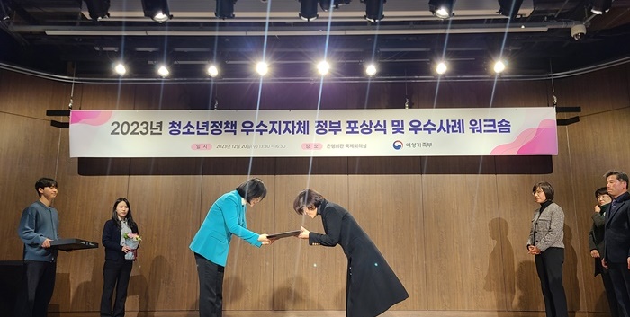 [½Ã»çÄÚ¸®¾ÆÀú³Î=Á¤Á¾¹Î ¼±ÀÓ±âÀÚ] °ÅÁ¦½Ã(½ÃÀå ¹ÚÁ¾¿ì)°¡ ¿©¼º°¡Á·ºÎ ÁÖ°ü 2023³â û¼Ò³âÁ¤Ã¥ ¿ì¼öÁöÀÚü·Î ¼±Á¤µÅ ¿©¼º°¡Á·ºÎ Àå°üǥâÀ» ¼ö»óÇß´Ù°í ¹àÇû´Ù.