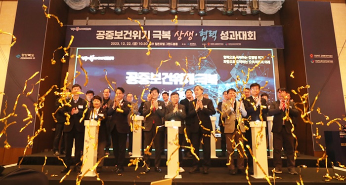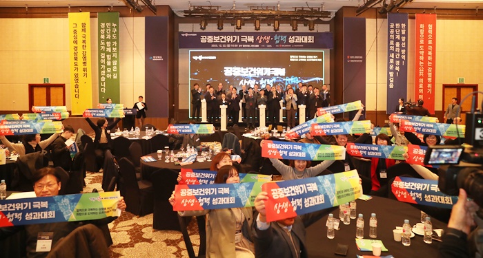 [½Ã»çÄÚ¸®¾ÆÀú³Î=±è¿¬ÇÐ ±âÀÚ] °æºÏµµ´Â 22ÀÏ °æÁÖ ÈúưȣÅÚ¿¡¼ °æºÏ±Ç ´ëÇк´¿øÀå, ÀÇ»çȸÀå, ÀÇ·á¿øÀå°ú ½Ã·±º º¸°Ç¼ÒÀå°ú °¨¿°º´°ü¸® ºÎ¼ Á÷¿ø µî 300¿© ¸íÀÌ Âü¼®ÇÑ °¡¿îµ¥ '°øÁߺ¸°ÇÀ§±â ±Øº¹, »ó»ý·Çù·Â ¼º°ú´ëȸ'¸¦ °³ÃÖÇß´Ù.