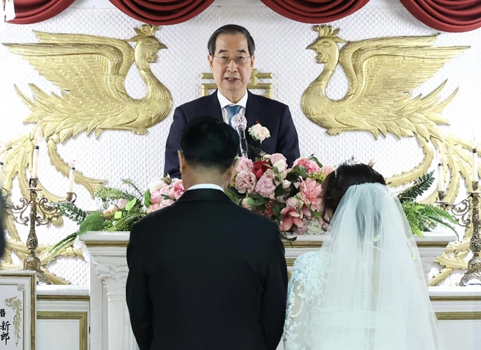 | ÇÑ´ö¼ö ±¹¹«ÃѸ®°¡ Å©¸®½º¸¶½º À̺êÀÎ 24ÀÏ °æ³² â¿ø½Ã ¸¶»êÇÕÆ÷±¸ ¼ÒÀç ½Å½Å¿¹½ÄÀåÀ» ã¾Æ °áÈ¥½ÄÀ» ¿Ã¸®´Â ºÎºÎ¸¦ À§ÇØ '±ô¦ ÁÖ·Ê'¸¦ ÀÚóÇß´Ù. »çÁøÀº ÇÑ ÃѸ®°¡ °í ¹é³²»ï ¾¾ÀÇ ¼ö»ó ÈÆÀå ¹× »óÆÐ¿Í º¸µµ±â»ç µîÀ» ¹Ù¶óº¸°í ÀÖ´Ù. /ÇÑ ÃѸ® ÆäÀ̽ººÏ |