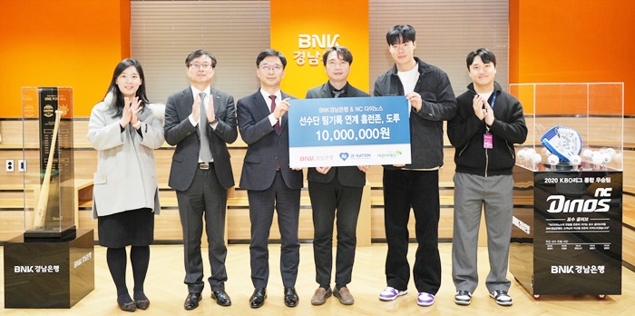 BNK°æ³²ÀºÇà ÀÓÀç¹® »ó¹«´Â “NC ´ÙÀ̳뽺 ¼±¼öµéÀÇ ³ë·ÂÀ¸·Î ¸¶·ÃÇÑ Àû¸³±ÝÀ» Áö¿ª Ãë¾à°èÃþ ¾î¸°À̵éÀ» À§ÇØ »ç¿ëÇÏ°Ô µÅ ÀÇ¹Ì ÀÖ´Ù"¸ç "2024³â¿¡µµ Áö¿ª ¿¬°í ÇÁ·Î¾ß±¸´ÜÀÎ NC ´ÙÀ̳뽺 ¼±¼öµéÀÇ È°¾àÀ» ±â´ëÇÑ´Ù. BNK°æ³²ÀºÇà°ú NC ´ÙÀ̳뽺´Â Áö¼ÓÀûÀ¸·Î Çù·ÂÇØ ´Ù¾çÇÑ »çȸ°øÇå»ç¾÷À» ÃßÁøÇØ ³ª°¡°Ú´Ù”°í ¸»Çß´Ù.