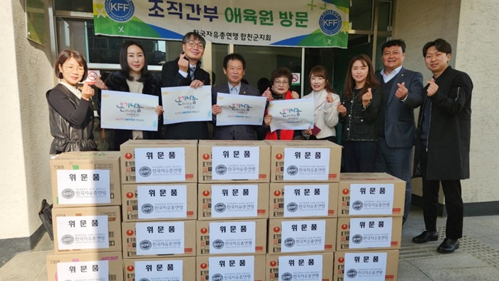 [½Ã»çÄÚ¸®¾ÆÀú³Î=Á¤Á¾¹Î ¼±ÀÓ±âÀÚ] Çѱ¹ÀÚÀ¯ÃÑ¿¬¸Í ÇÕõ±ºÁöȸ(ȸÀå Â÷±â¿î)´Â 28ÀÏ ¿ÀÀü 11½Ã Â÷±â¿î ȸÀå ¿Ü Á¶Á÷ °£ºÎµéÀÌ ÇÕõ¾ÖÀ°¿øÀ» ¹æ¹®ÇØ ¾ÖÀ°¿ø ¾ÆÀ̵鿡°Ô ¹°Ç°À» Àü´ÞÇß´Ù.