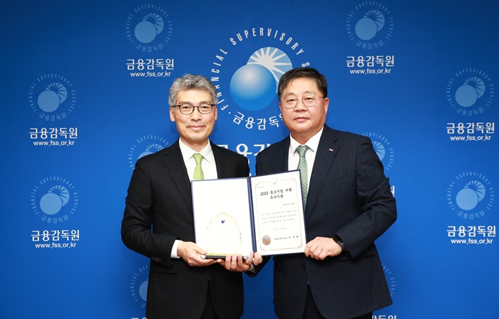 | BNK°æ³²ÀºÇà ¹Ú»óÈ£ »ó¹«(»çÁø ¿À¸¥ÂÊ)°¡ ±ÝÀ¶°¨µ¶¿ø ÀÌÁؼö ºÎ¿øÀåÀ¸·ÎºÎÅÍ Áß¼Ò±â¾÷ Áö¿ø ºÎ¹® Áß¼ÒÇüÀºÇà±×·ì ‘±â°ü»ó’À» ¼ö»óÇϰí ÀÖ´Ù. |