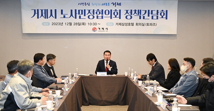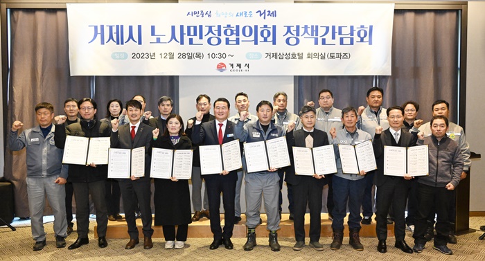 [½Ã»çÄÚ¸®¾ÆÀú³Î=Á¤Á¾¹Î ¼±ÀÓ±âÀÚ] °ÅÁ¦½Ã(½ÃÀå ¹ÚÁ¾¿ì)´Â 28ÀÏ °ÅÁ¦»ï¼ºÈ£ÅÚ¿¡¼ °ÅÁ¦½Ã³ë»ç¹ÎÁ¤ÇùÀÇȸ À§¿ø ¹× ½Ç¹«ÃßÁøÀ§¿ø µî 30¿© ¸íÀÌ Âü¼®ÇÑ °¡¿îµ¥ ³ë»ç¹ÎÁ¤ÇùÀÇȸ Á¤Ã¥ °£´ãȸ¸¦ °³ÃÖÇß´Ù.