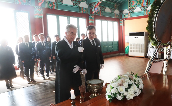 [½Ã»çÄÚ¸®¾ÆÀú³Î=Á¤Á¾¹Î ¼±ÀÓ±âÀÚ] ¹ÚÁ¾ÈÆ °æ³²±³À°°¨ÀÌ °©Áø³â »õÇØ¸¦ ¸Â¾Æ 1ÀÏ ¿ÀÀü 11½Ã ±¹¸³3.15¹ÎÁÖ¹¦Áö¿¡ ¸¶·ÃµÈ À¯¿µºÀ¾È¼Ò¸¦ Âü¹èÇϰí, ¿ì¸® °æ³²ÀÇ ¾ÆÀ̵é°ú ÇÔ²² ±×¸®´Â ¹Ì·¡¸¦ ÇâÇØ ´õ¿í Èû¾²°Ú´Ù°í ´ÙÁüÇß´Ù.