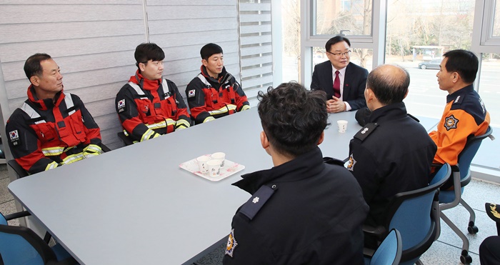 | È«³²Ç¥ â¿ø½ÃÀåÀº 2ÀÏ ¿Üµ¿ 119¾ÈÀü¼¾Å͸¦ ¹æ¹®ÇØ ÃÖÀϼ±¿¡¼ ½Ã¹ÎÀÇ »ý¸í°ú ¾ÈÀüÀ» ÁöŰ´Â ¼Ò¹æ °ø¹«¿øµéÀÇ ³ë°í¸¦ °Ý·ÁÇß´Ù. |