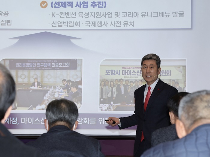 À̰´ö Æ÷Ç×½ÃÀåÀÌ 2ÀÏ ½Ãû ´ëȸÀǽǿ¡¼ ½Å³â ±âÀÚȸ°ßÀ» ¿°í ¿ÃÇØ ½ÃÁ¤ ¿î¿µ ¹æÇâÀ» Á¦½ÃÇß´Ù.