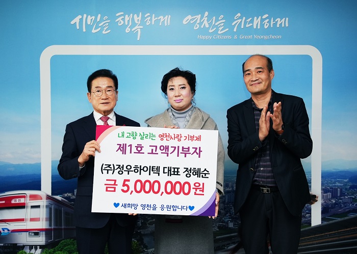 ¢ßÁ¤¿ìÇÏÀÌÅØ Á¤Çý¼ø ´ëÇ¥´Â À̳¯ °íÇâ»ç¶û±âºÎ±Ý ÃÖ°í±Ý¾×ÀÎ 500¸¸ ¿øÀ» ±âŹÇÏ¸ç “¿µÃµ¿¡¼ ±â¾÷ü¸¦ ¿î¿µÇÏ¸ç ±âºÎ¸¦ ÅëÇØ ¿µÃµ½Ã¿¡ ÀÛÀº ÈûÀÌ¶óµµ º¸ÅÅ ¼ö ÀÖ¾î ±â»Ú°Ô »ý°¢ÇÑ´Ù”¸ç “°íÇâ»ç¶û±âºÎ±ÝÀ» ÅëÇØ ¿µÃµ½Ã ¹ßÀü¿¡ ÈûÀ» º¸ÅÅ ¼ö ÀÖ¾î ³Ê¹« »ÑµíÇÏ°í ¾ÕÀ¸·Îµµ ¿µÃµÀÇ ¹ßÀüÀ» ÇÔ²² ÀÀ¿øÇϰí ÁöÄѺ¸°Ú´Ù”°í ¸»Çß´Ù.