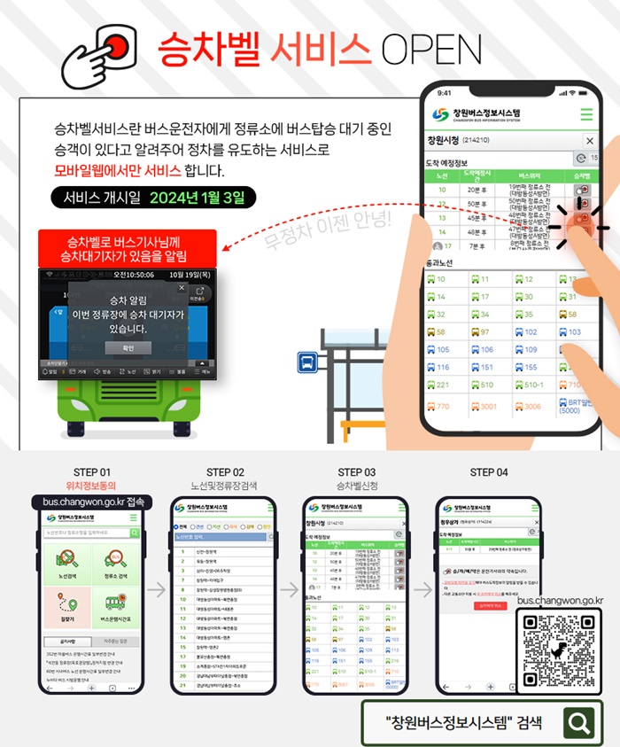 Á¤·ù¼Ò¿¡ ÀÖ´Â ½Â°´ÀÌ ‘â¿ø½Ã ¹ö½ºÁ¤º¸½Ã½ºÅÛ(bus.changown.go.kr)’¿¡ Á¢¼ÓÇØ ž½Â Èñ¸Á ³ë¼±À» °Ë»ö ÈÄ ‘½ÂÂ÷ º§’ ¹öưÀ» ´©¸£¸é, ¹ö½º ¿îÀü¼®¿¡ ¼³Ä¡µÈ ´Ü¸»±â¿¡ ½ÂÂ÷ ¿¹¾àÁ¤º¸(´Ü¸» ȸé/À½¼º)°¡ Àü¼ÛµÅ ¹ö½º ¿îÀüÀÚ¿¡°Ô ½Â°´ÀÌ ´ë±âÇϰí ÀÖÀ½À» ¾Ë¸°´Ù.
