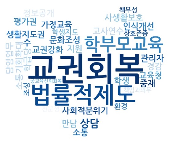 ±³»ç´Â ‘±³±Ç °È ¹× º¸È£¸¦ À§ÇÑ »çȸÀû ºÐÀ§±â Á¶¼º’(28.5%), ‘±³±Ç °È ¹× º¸È£¸¦ À§ÇÑ ¹ý·ü ±ÔÁ¤ ¸¶·Ã’(26.6%), ‘Çкθð-±³»ç °£ »óÈ£ Á¸ÁßÀ» À§ÇÑ ¹®È Á¶¼º’(25.3%) ¼øÀ¸·Î ÀÀ´äÇß´Ù.
