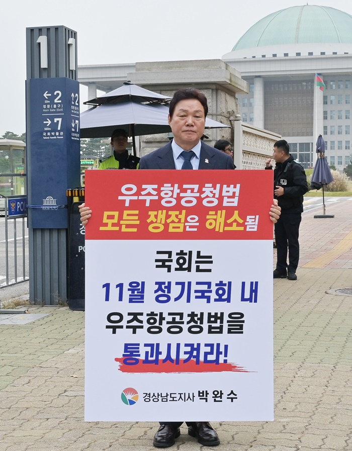 [½Ã»çÄÚ¸®¾ÆÀú³Î=Á¤Á¾¹Î ¼±ÀÓ±âÀÚ] ¹Ú¿Ï¼ö °æ³²µµÁö»ç°¡ ±¹È¸ÀÇ¿ø Àü¿ø¿¡°Ô Ä£Àü±îÁö Àü´ÞÇϸç ÇùÁ¶¸¦ ¿äûÇß´ø '¿ìÁÖÇ×°øÃ» ¼³Ä¡ ¹× ¿î¿µ¿¡ °üÇÑ Æ¯º°¹ý'(ÀÌÇÏ ¿ìÁÖÇ×°øÃ»¹ý)ÀÌ ¿À´Â 9ÀÏ ±¹È¸¸¦ Åë°úÇÒ °ÍÀ¸·Î º¸ÀδÙ.