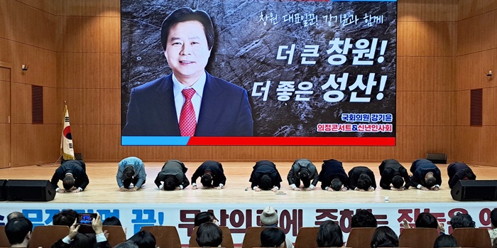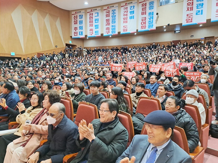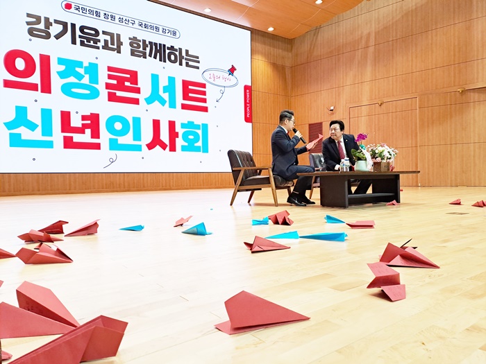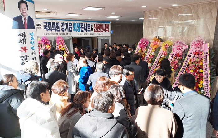 [½Ã»çÄÚ¸®¾ÆÀú³Î=Á¤Á¾¹Î ¼±ÀÓ±âÀÚ] °±âÀ± ±¹È¸ÀÇ¿ø(±¹¹ÎÀÇÈû, â¿ø½Ã ¼º»ê±¸)ÀÇ 'ÀÇÁ¤ÄܼƮ ¹× 2024 ½Å³âÀλçȸ'°¡ 8ÀÏ ¿ÀÈÄ 2½Ã â¿ø´ëÇб³ ±Û·Î¹úÆò»ýÇнÀ°ü(98È£)¿¡¼ 2,000¿©¸íÀÇ ´ç¿ø µîÀÌ Âü¼®ÇÑ °¡¿îµ¥ ¿·È´Ù. ÀÚ¸®°¡ ºÎÁ·ÇØ °è´Ü°ú Åë·Î¿¡ ¾É°Å³ª ÁÙÀ» ¼±âµµ Çß´Ù.