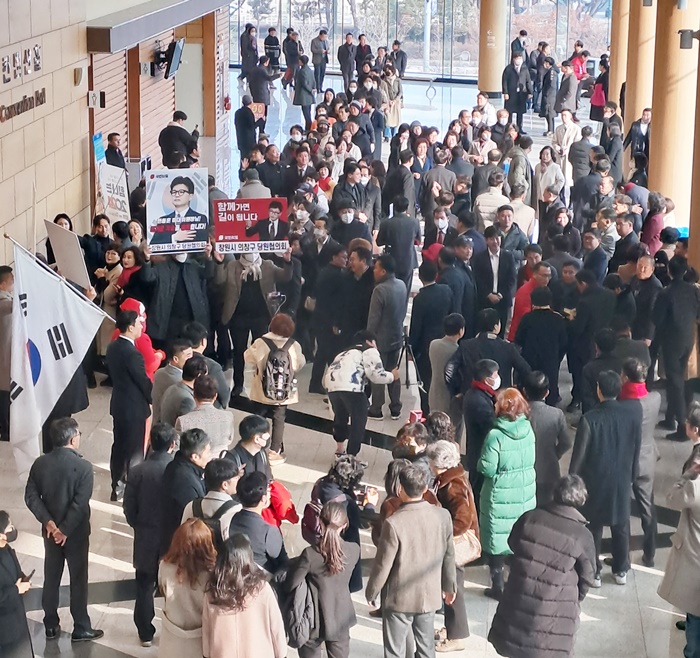 | 10ÀÏ ¿ÀÀü °æ³² â¿ø½Ã ¼º»ê±¸ â¿øÄÁº¥¼Ç¼¾ÅÍ¿¡¼ ¿¸° '±¹¹ÎÀÇÈû °æ³²µµ´ç ½Å³â Àλçȸ'¿¡ 1õ¿©¸íÀÇ ´ç¿ø µîÀÌ ¸ô·Á ÀÔÀåÇϱâ À§ÇØ ±ä ÁÙÀ» ¼°í ÀÖ´Ù. |