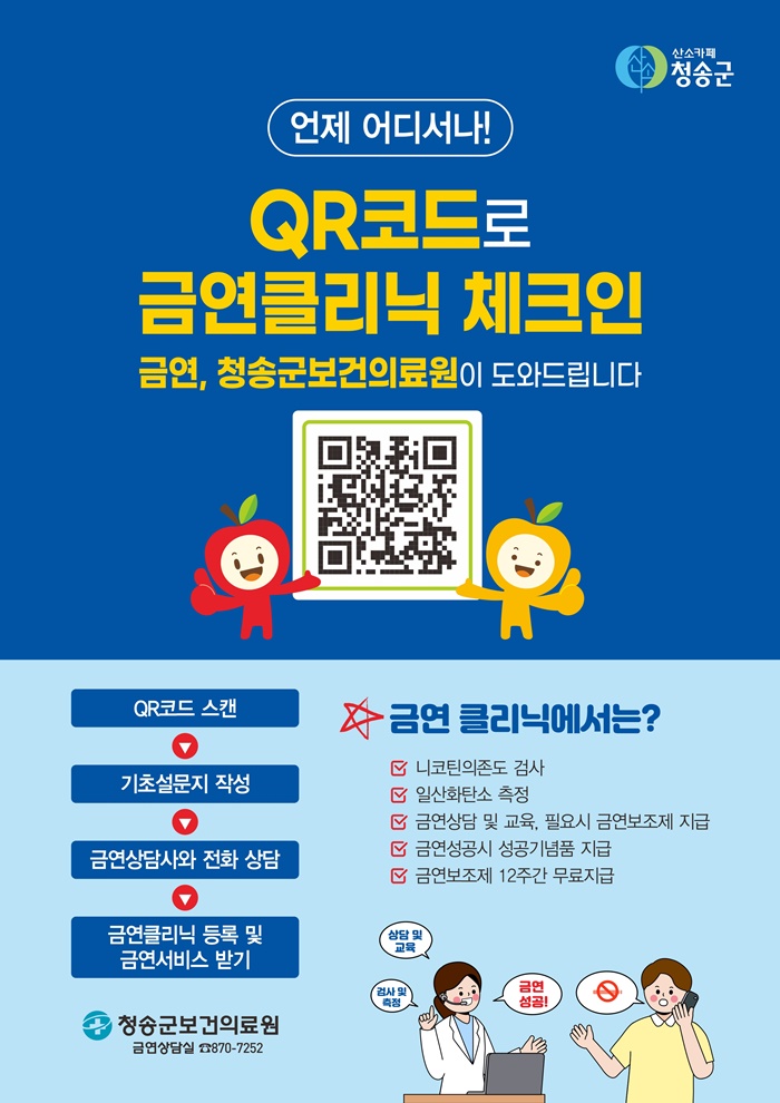 [½Ã»çÄÚ¸®¾ÆÀú³Î=±è¿¬ÇÐ ±âÀÚ] û¼Û±º º¸°ÇÀÇ·á¿øÀº °ü³» Èí¿¬ÀÚÀÇ ±Ý¿¬ Áö¿ø°ú ¸ð¹ÙÀÏ ±Ý¿¬Å¬¸®´Ð Ȱ¼ºÈ¸¦ À§ÇØ QRÄڵ带 °³¼³Çß´Ù°í ¹àÇû´Ù.