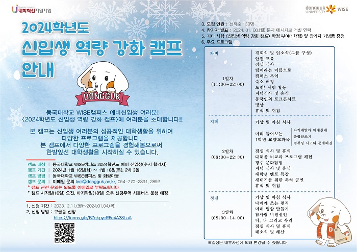 [½Ã»çÄÚ¸®¾ÆÀú³Î=°æºÏÃëÀ纻ºÎ] µ¿±¹´ë WISEÄ·ÆÛ½º ±³¾çÀ¶ÇÕ¿ø(¿øÀå ÃÖÁ¤ÀÚ)Àº 16~18ÀÏ 3Àϰ£ °æÁÖ È¶û¸¶À»¿¡¼ 2024³â ¿¹ºñ ½ÅÀÔ»ýÀ» À§ÇÑ '½ÅÀÔ»ý ¿ª·®°È Ä·ÇÁ'¸¦ °³ÃÖÇÑ´Ù.