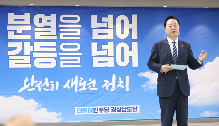 °æ³²µµ´çÀº À̳¯ ¹ßÇ¥ÇÑ ½½·Î°Ç ‘ºÐ¿À» ³Ñ¾î, °¥µîÀ» ³Ñ¾î, ¿ÏÀüÈ÷ »õ·Î¿î Á¤Ä¡’ ÄÁ¼Á¿¡ ´ëÇØ [ºÐ¿À» ³Ñ¾î: ±¹¹Î ºÐ¿°ú °¥µîÀ» Á¶ÀåÇÏ´Â Á¤Ä¡¸¦ ¸ØÃß°í ±¹¹ÎÅëÇÕ, µµ¹ÎÅëÇÕÀ» ÀÌ·ç¾î³»°Ú´Ù´Â ¹ÎÁÖ´ç °æ³²µµ´çÀÇ ´ÙÁü], [°¥µîÀ» ³Ñ¾î: ³²ºÏ°¥µî, ¿µÈ£³²°¥µî, ¼¼´ë°¥µî, ³²³à°¥µî µî ´ëÇѹα¹ÀÇ ¸ðµç °¥µîÀº ¶Ù¾î³Ñ°Ú´Ù´Â ¹ÎÁÖ´ç °æ³²µµ´çÀÇ ¾à¼Ó]°ú ÇÔ²² [‘¿ÏÀüÈ÷ »õ·Î¿î Á¤Ä¡’·Î ´õºÒ¾î¹ÎÁÖ´ç °æ³²µµ´çÀÌ 330¸¸ °æ³²µµ¹ÎÀÇ ¸ñ¼Ò¸®¿¡ ±Í ±â¿ïÀ̰í, ±×µéÀÇ ¹Ù¶÷¿¡ ÀÀ´äÇÏ´Â Èñ¸ÁÁ¤Ä¡¸¦ ½ÇÇöÇϰڴÙ]´Â Àǹ̸¦ ´ã¾Ò´Ù°í ¼³¸íÇß´Ù.