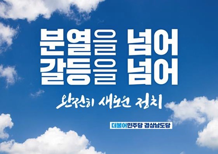 | ¹ÎÁÖ´ç °æ³²µµ´çÀÌ 4¿ù ÃѼ± ½Â¸®¸¦ À§ÇÑ ½½·Î°ÇÀ¸·Î ‘ºÐ¿À» ³Ñ¾î, °¥µîÀ» ³Ñ¾î, ¿ÏÀüÈ÷ »õ·Î¿î Á¤Ä¡’. |