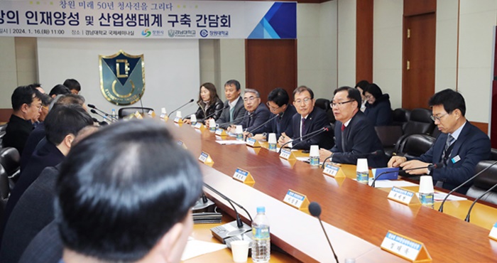 ¸¶Áö¸· ¹æ¹®ÁöÀÎ °æ³²´ëÇб³ ±¹Á¦ ¼¼¹Ì³ª½Ç¿¡¼´Â â¿øÀÇ »õ·Î¿î »ê¾÷»ýÅÂ°è ±¸Ãà°ú âÀÇ ÀÎÀç ¾ç¼ºÀ» À§ÇÑ »ê·Çз¿¬·°ü °£´ãȸ°¡ ¿·È´Ù.