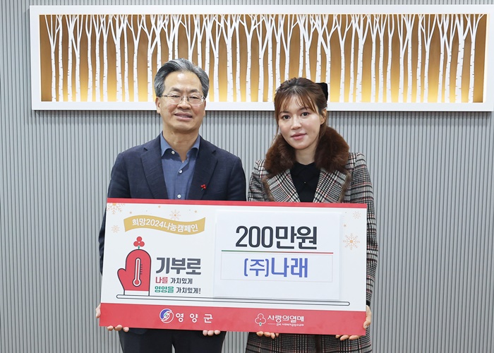 [½Ã»çÄÚ¸®¾ÆÀú³Î=±è¿¬ÇÐ ±âÀÚ] (ÁÖ)³ª·¡(´ëÇ¥ ±è¹Î¼)´Â 17ÀÏ ¿µ¾ç±º¿¡ 'Èñ¸Á2024³ª´®Ä·ÆäÀÎ' ¼º±Ý 200¸¸ ¿øÀ» Àü´ÞÇß´Ù.