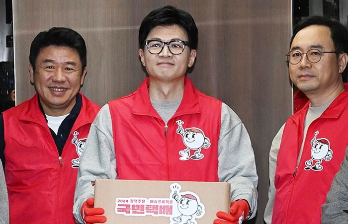 | ¹ÎÁÖ´ç ÀÌÀç¸í ´ëÇ¥(¿ÞÂÊ)¿Í ±¹¹ÎÅù踦 Àü´ÞÇÏ´Â ±¹¹ÎÀÇÈû Çѵ¿ÈÆ ºñ»ó´ëÃ¥À§¿øÀå. |