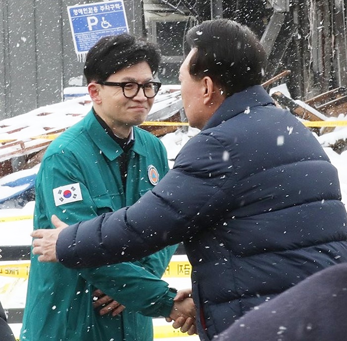 | À±¼®¿ ´ëÅë·ÉÀÌ 23ÀÏ Ãæ³² ¼Ãµ±º ¼ÃµÀ¾ ¼ÃµÆ¯È½ÃÀå ÈÀç ÇöÀå¿¡¼ ±¹¹ÎÀÇÈû Çѵ¿ÈÆ ºñ»ó´ëÃ¥À§¿øÀå°ú ¸¸³ª ÀλçÇϰí ÀÖ´Ù. |