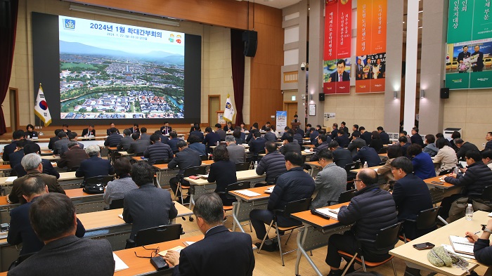 [½Ã»çÄÚ¸®¾ÆÀú³Î=°æºÏÃëÀ纻ºÎ] ÁÖ³«¿µ °æÁÖ½ÃÀåÀº 22ÀÏ ½Ãû ¾ËõȦ¿¡¼ °©Áø³â »õÇØ ù È®´ë°£ºÎ ȸÀǸ¦ ÁÖÀçÇÏ¸é¼ ºÎ¼Àåµé·ÎºÎÅÍ Çö¾È ¹× ¿ÃÇØ ¿ªÁ¡»çÇ×À» º¸°í ¹Þ°í ´õ ³ªÀº ¹Ì·¡¸¦ ÁغñÇÏ´Â ´õ Å« °æÁÖ Á¶¼º¿¡ ¿Â ÈûÀ» ´Ù ÇØÁÙ °ÍÀ» °·Â ÁÖ¹®Çß´Ù.