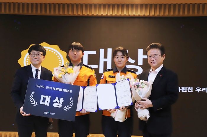 [½Ã»çÄÚ¸®¾ÆÀú³Î=±è¿¬ÇÐ ±âÀÚ] °æºÏ¼Ò¹æº»ºÎ´Â Áö³ 23ÀÏ ‘°æ»óºÏµµ °ø¹«¿ø AI âÀÛ¹° ÄÜÅ×½ºÆ®’¿¡¼ ¼Ò¹æº»ºÎ ¼Ò¼Ó ¼Ò¹æÀå Á¤´ÙÈ£, ¼Ò¹æ»ç ¿ì¿µÁØ ´ë¿øÀÌ µµ³» 1À§ÀÎ ´ë»óÀ» ¼ö»óÇß´Ù°í ¹àÇû´Ù.