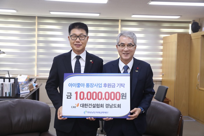 [½Ã»çÄÚ¸®¾ÆÀú³Î=Á¤Á¾¹Î ¼±ÀÓ±âÀÚ] °æ»ó³²µµ¹Ì·¡±³À°Àç´Ü(ÀÌ»çÀå ¹ÚÁ¾ÈÆ °æ»ó³²µµ±³À°°¨)Àº 25ÀÏ ¿ÀÀü ´ëÇѰǼ³Çùȸ °æ³²µµÈ¸(ȸÀå °µ¿±¹)°¡ °æ³²±³À°Ã»À» ¹æ¹®ÇØ ‘¾ÆÀÌÁÁ¾Æ ÅëÀå»ç¾÷’ ÈÄ¿ø±Ý 1,000¸¸ ¿øÀ» ±âŹÇß´Ù°í ¹àÇû´Ù.