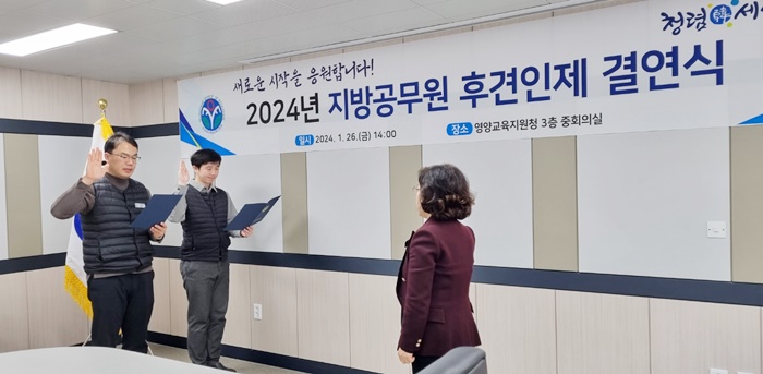 [½Ã»çÄÚ¸®¾ÆÀú³Î=±è¿¬ÇÐ ±âÀÚ] °æºÏ ¿µ¾ç±³À°Áö¿øÃ»(±³À°Àå ±èÀ¯Èñ)Àº Áö³ 26ÀÏ ÁßȸÀǽǿ¡¼ ¿ÃÇØ ½Å±Ô°ø¹«¿ø 3¸í°ú ¼±¹è°ø¹«¿ø 8¸íÀÌ Âü¼®ÇÑ °¡¿îµ¥ ½Å±Ô °ø¹«¿øµéÀÌ ¾ÈÁ¤ÀûÀ¸·Î ¾÷¹«¿¡ ÀûÀÀÇÒ ¼ö ÀÖ´Â ºÐÀ§±â Á¶¼ºÀ» À§ÇÏ¿© Áö¹æ°ø¹«¿ø ÈİßÀÎÁ¦ °á¿¬½ÄÀ» °¡Á³´Ù.