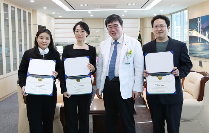 [½Ã»çÄÚ¸®¾ÆÀú³Î=Á¤Á¾¹Î ¼±ÀÓ±âÀÚ] Áö³ÇØ Áß±¹ Ç㺣À̼º¿¡ À§Ä¡ÇÑ ÇϺϰøÁ¤´ëÇÐ ºÎ¼Óº´¿ø(º´¿øÀå À̰迵)°ú »óÈ£ ¹ßÀüÀ» À§ÇÑ ¾÷¹«Çù¾àÀ» ü°áÇß´ø °í½Å´ëº´¿ø(º´¿øÀå ¿À°æ½Â)ÀÌ ÃÖ±Ù ÇϺϰøÁ¤´ëÇÐ ºÎ¼Óº´¿ø ¼Ò¼Ó ÀÇ·áÁø 3¸í ´Ü±â¿¬¼ö¸¦ ¼º°øÀûÀ¸·Î ÁøÇàÇϰí Áö³ 25ÀÏ ¼ö·á½ÄÀ» °¡Á³´Ù.