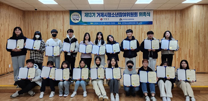 [½Ã»çÄÚ¸®¾ÆÀú³Î=Á¤Á¾¹Î ¼±ÀÓ±âÀÚ] °ÅÁ¦½Ã´Â Áö³ 27ÀÏ ¾ÆÁÖû¼Ò³â¹®ÈÀÇÁý 4Ãþ °´ç¿¡¼ À§¿ø 20¸íÀÌ Âü¼®ÇÑ °¡¿îµ¥ 2024³â Á¦13±â °ÅÁ¦½Ãû¼Ò³âÂü¿©À§¿øÈ¸ ‘All In Us’ À§Ã˽ÄÀ» ½ÃÀÛÀ¸·Î º»°ÝÀûÀΠȰµ¿À» ÁøÇàÇÑ´Ù°í ¹àÇû´Ù.