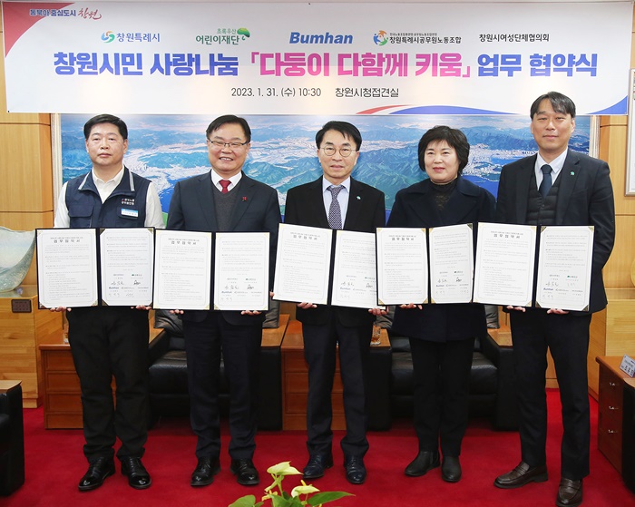 | â¿øÆ¯·Ê½Ã´Â 31ÀÏ ½Ãû Á¢°ß½Ç¿¡¼ ‘´ÙµÕÀÌ ´ÙÇÔ²² Ű¿ò’ »ç¾÷ Çù¾à½ÄÀ» °³ÃÖÇß´Ù. »çÁø ¿ÞÂʺÎÅÍ ÀÌ»ó½Å â¿ø½Ã°ø¹«¿ø³ëµ¿Á¶ÇÕ À§¿øÀå, È«³²Ç¥ â¿ø½ÃÀå, Á¤¿µ½Ä ¹üÇѱ׷ì ȸÀå, °¿µÀÓ Ã¢¿ø½Ã ¿©¼º´ÜüÇùÀÇȸÀå, Á¶À¯Áø ÃÊ·Ï¿ì»ê °æ³²Áö¿ªº»ºÎÀå. |