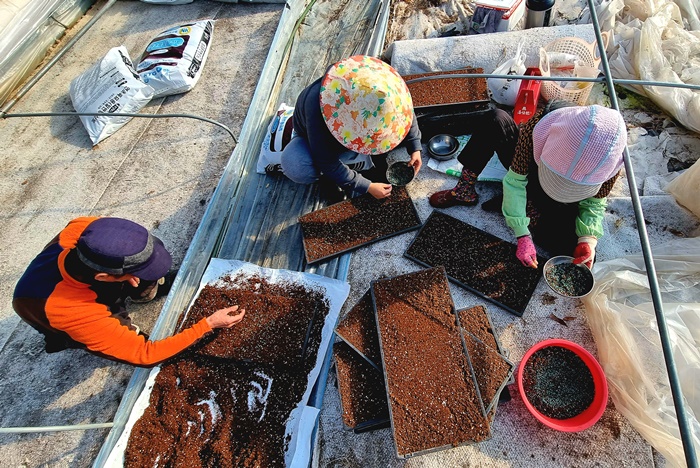 ÆÄÁ¾ÀÌ ³¡³ µÚ, À̸¥ º½ ¼¸®¸¦ ÇÇÇÏ°í ´Ê¼¸®°¡ °¡¸é ±æ°Ô ´Ã¾î³õÀº °ËÀº ºñ´Ò À§¿¡ ÀÏÁ¤ÇÑ °£°ÝÀ¸·Î ±¸¸ÛÀ» ³»°í ÃæºÐÈ÷ °ü¼öÇÑ ÈÄ¿¡ ¸ðÁ¾À» ½É´Â´Ù.