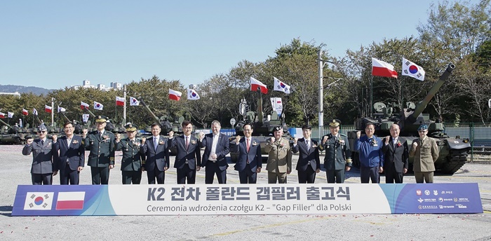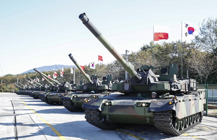 | ÇÑÈµðÆæ½º¿Í Çö´ë·ÎÅÛÀÌ Áö³ 2022³â 10¿ù Æú¶õµå¿¡ ¼öÃâÇÒ Ã¢¿øÀÇ ¸íǰ¹«±â K2 ÀüÂ÷¿Í K9 ÀÚÁÖÆ÷ Ãâ°í½ÄÀ» °³ÃÖÇß´Ù. /ÀÚ·á»çÁø |