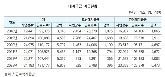 ¹Ý¸é °£ÀÌ´ëÁö±Þ±ÝÀÇ °æ¿ì¿¡ 2021³â 4,672¾ï¿ø¿¡¼ 2023³â 6,473¾ï¿øÀ¸·Î Áõ°¡ÇÑ °ÍÀ¸·Î Á¶»çµÆ´Ù.